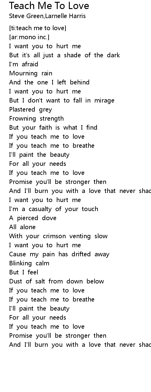 A beautiful, real deep and soft song from Mono Inc. with lyrics. Teach Me How To Love Lyrics are a theme that is being searched for and appreciated by netizens nowadays. You can Get the Teach Me How To Love Lyrics here. Save all royalty-free images. Shawn Mendes - Teach Me How To Love (Lyric Video), Wonder" the album out now Listen now: https://Wonder.lnk.to/Album Follow Shawn Mendes Instagram .
